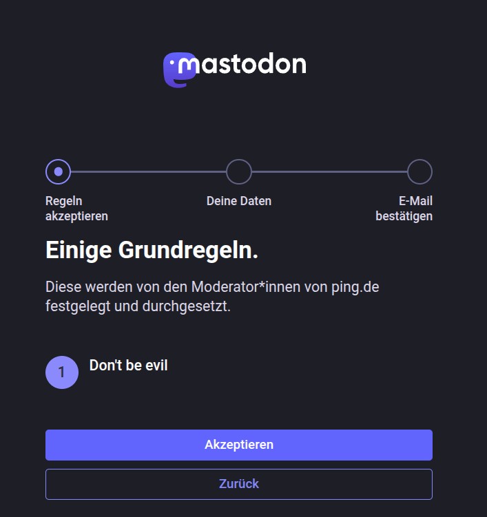 - Link anklicken und die Grundregeln bestätigen indem Ihr auf "Akzeptieren" geht.